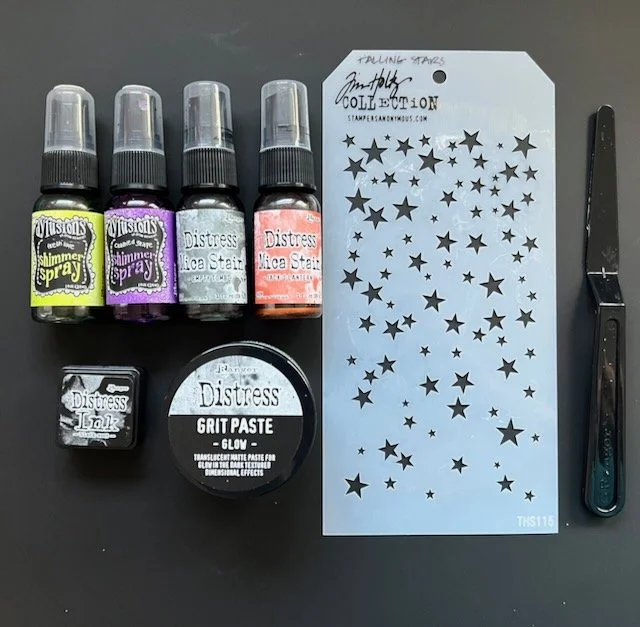 Tim Holtz - Falling Stars stencil, Glow Grit Paste