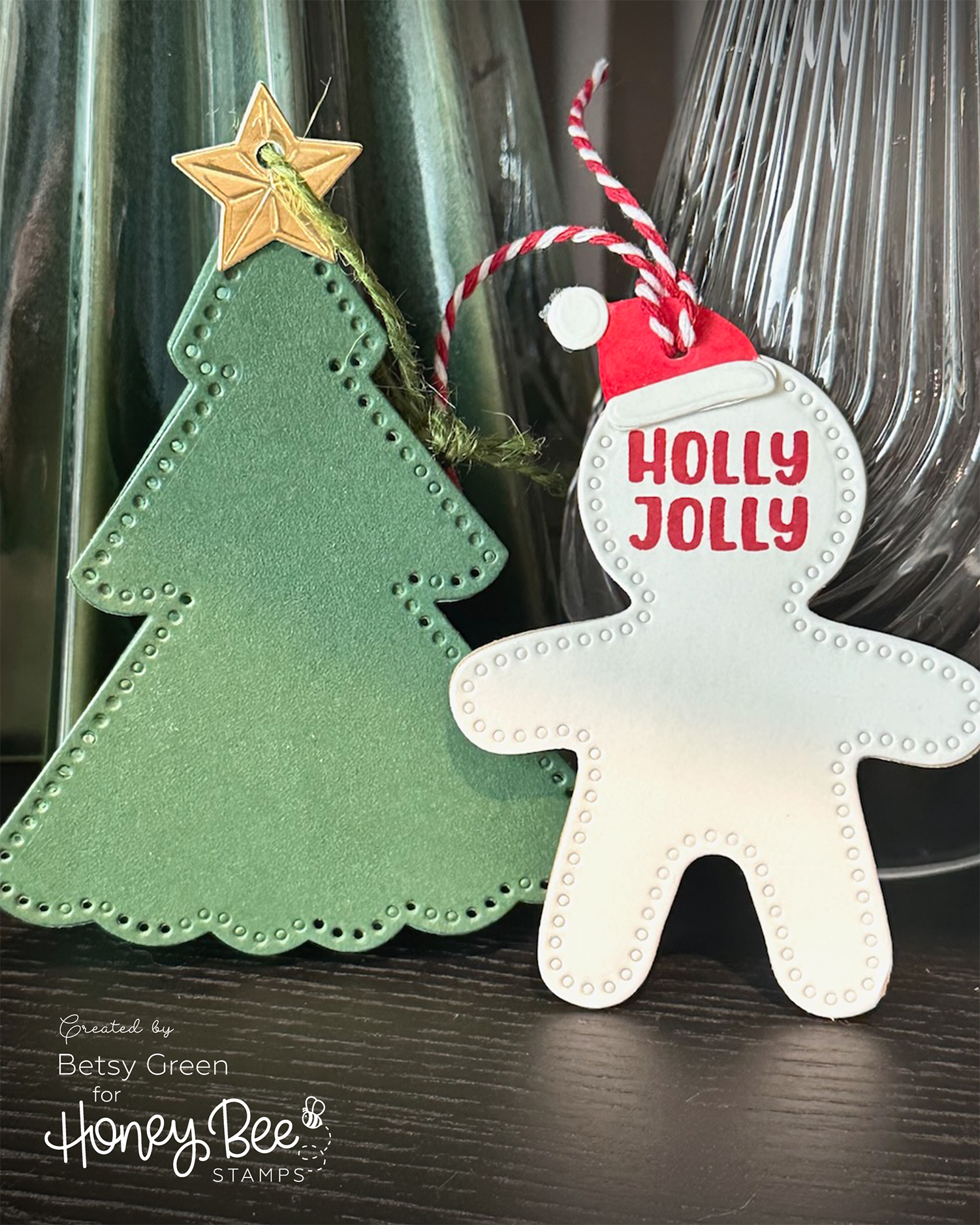 Welcome to Tag Week! Honey Bee Stamps has been celebrating all week with great inspiration for creating tags — for your holiday gift giving and all year. I decided to take a couple of products from the current Honey Bee Stamps Merry Moments release to use to create tags, and to find a way to step them up with a little something extra in the process.