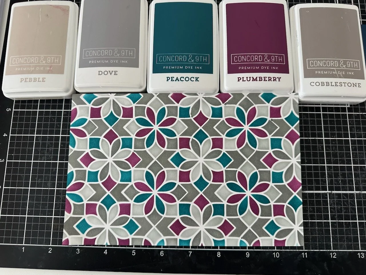 ink: Concord & 9th Plumberry, Peacock, Dove, Cobblestone, Pebble.