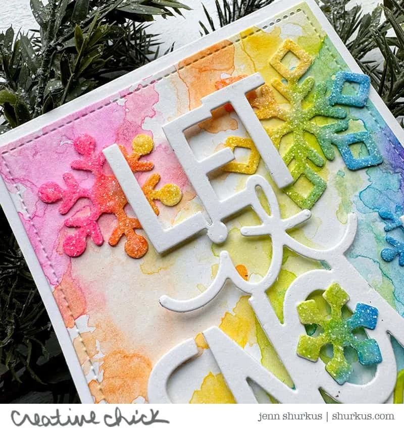 use of glitter. She is the queen of “glitter all the things”, so I did not want to do an “inspired by Jenn” card without glitter. (This card uses both glitter paper and Distress Rock Candy glitter.)
