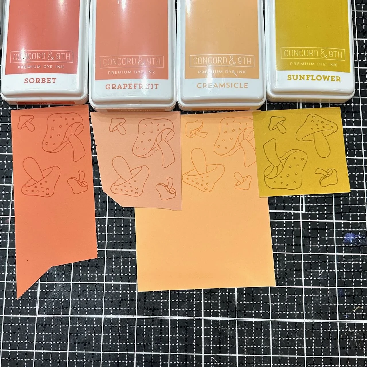 cardstock: Concord & 9th Cayenne, Sorbet, Grapefruit, Creamsicle, Sunflower, Kraft, and Mushroom. Hammermill White.
